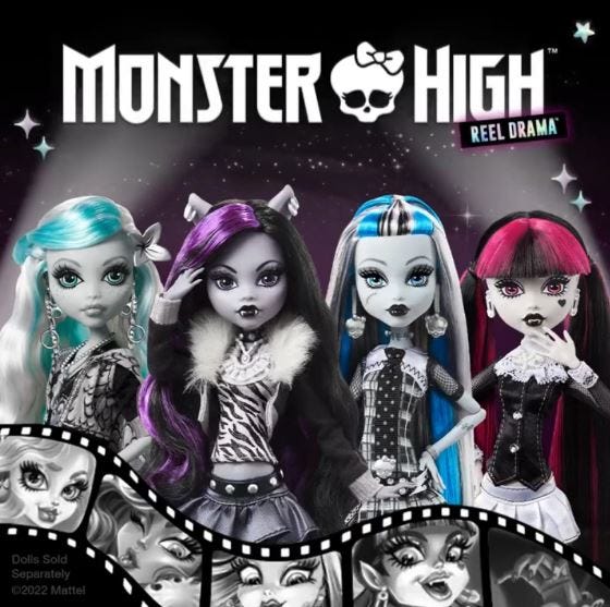 The four dolls included Draculaura, Frankie Stein, Lagoona Blue, and Clawdeen Wolf.